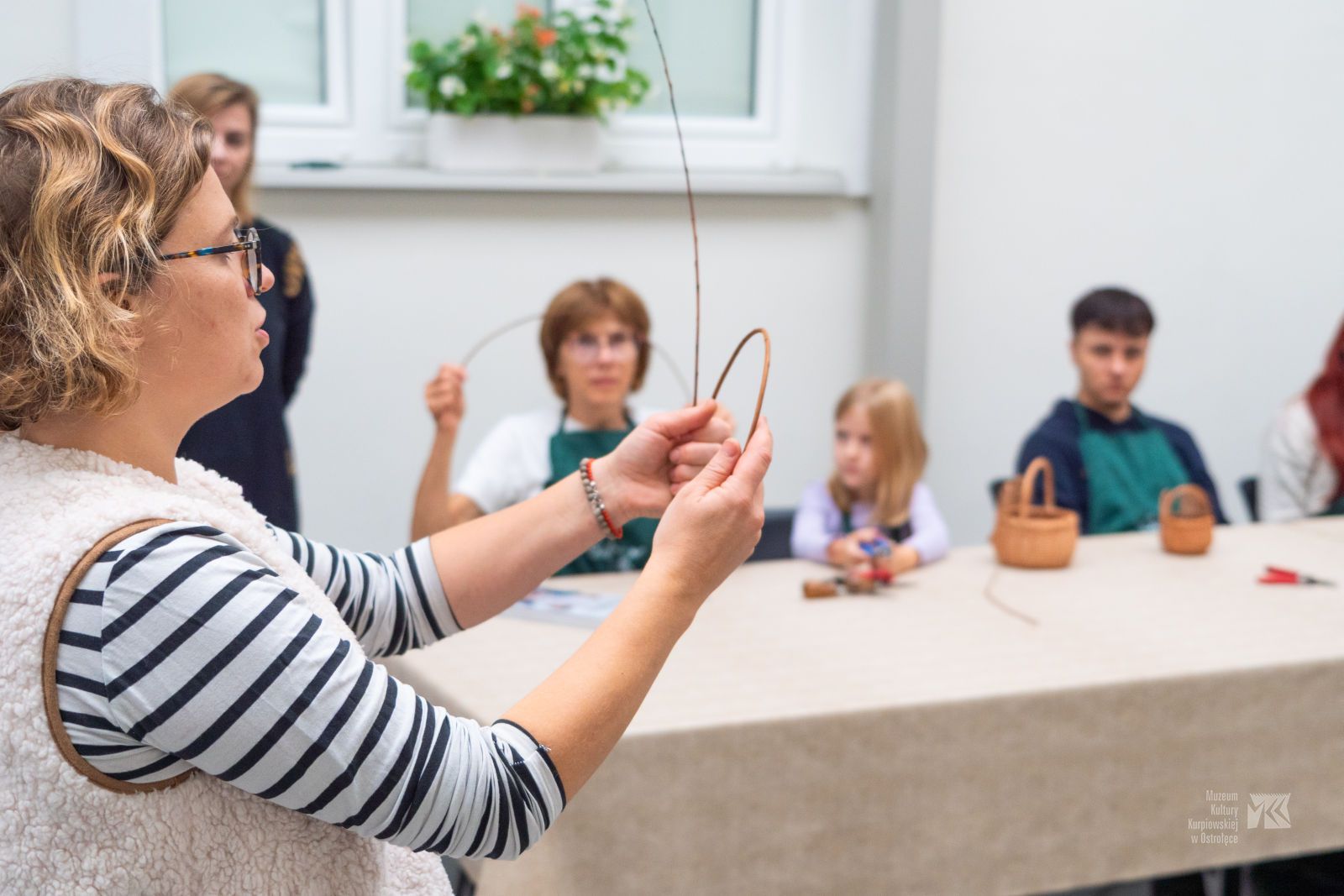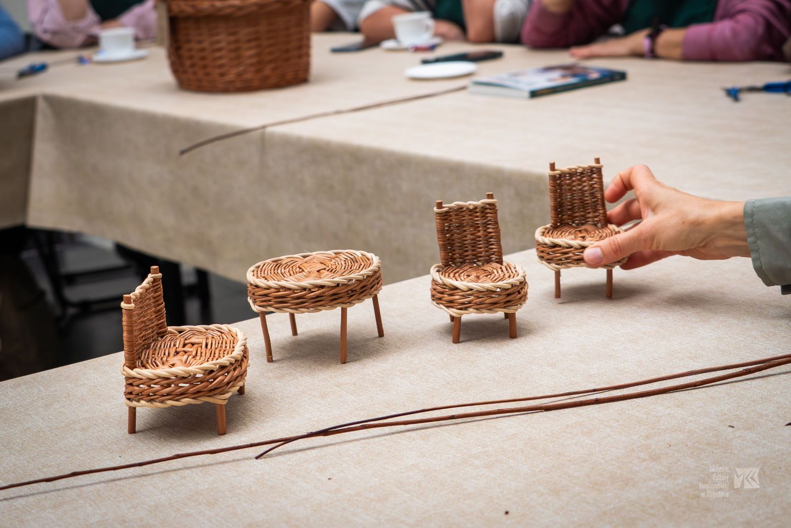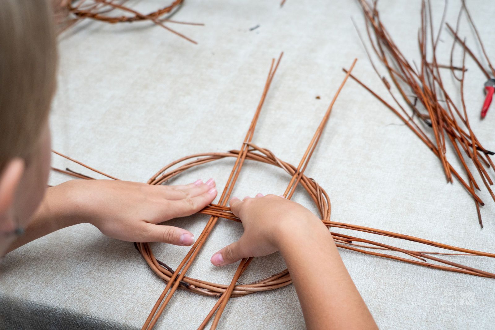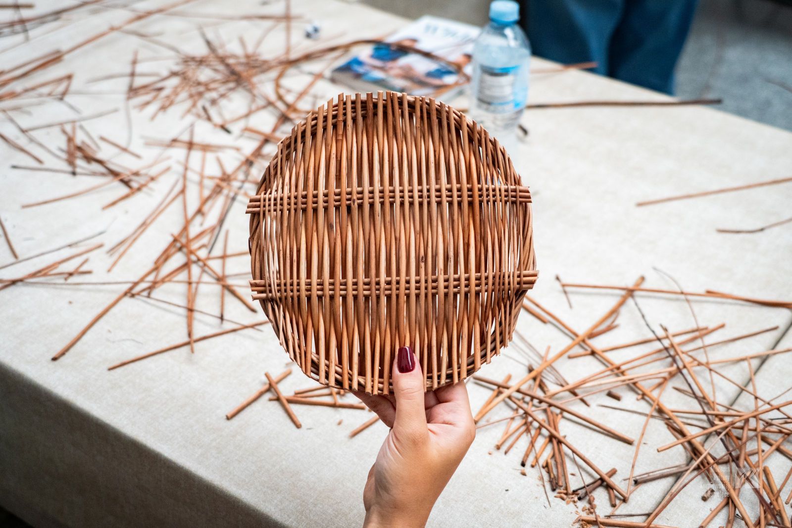 Uczestnicy warsztatów uczyli się, czym jest wiklina, gdzie rośnie, kiedy się ją zbiera, do czego bywa wykorzystywana, a także jak z niej wyplatać. Nasi goście mogli sami spróbować sił w tym rzemiośle oraz poczuć radość tworzenia z czystej natury. Pod okiem animatorek zrodziły się piękne stylowe talerzyki z wikliny. Całe wydarzenie upłynęło w miłej, życzliwej atmosferze rozmów i odkrywania tradycyjnych technik, a każdy z uczestników mógł zabrać własnoręcznie wyplecione dzieło do domu.