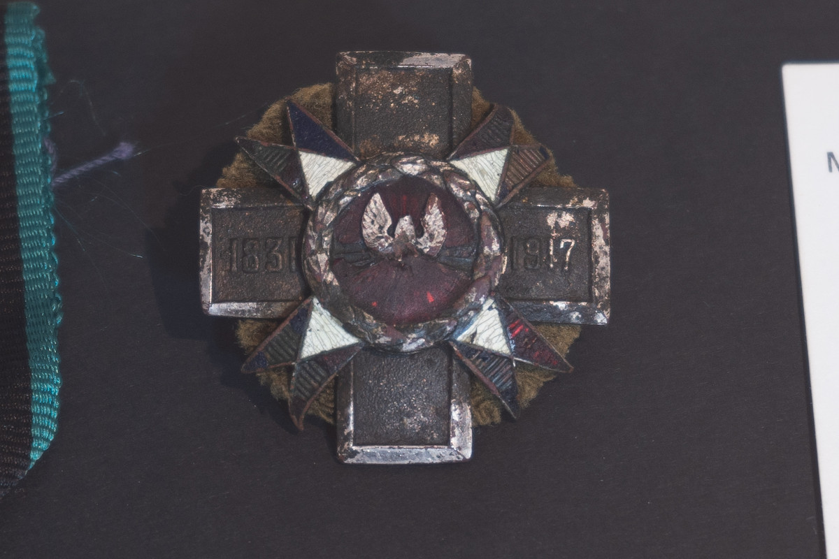 I jest jedna, na której wydarzenia dziejowe odcisnęły duży ślad. Ma obtartą emalię, mechaniczne uszkodzenia na ramionach i tarczy i źle zachowany wizerunek Orła Białego. Wciąż jest przymocowana do wystrzępionych fragmentów munduru, z którego najprawdopodobniej została gwałtownie wydarta. Odznaka ta należała do nieznanego nam podoficera 5 pułku. Została znaleziona przy torach kolejowych wiodących w głąb Białorusi. Można jedynie domyślać się, jak tragicznych wydarzeń była świadkiem.