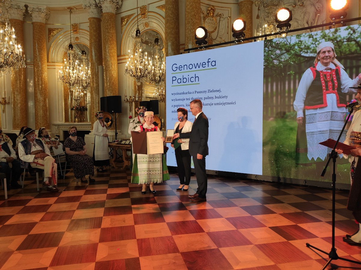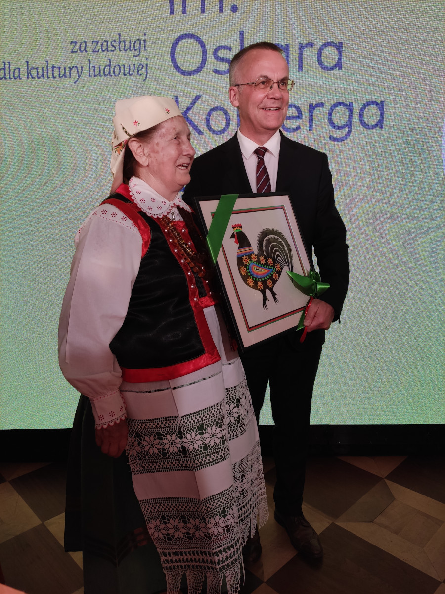 1 lipca w Sali Wielkiej Ansamblowej Zamku Królewskiego w Warszawie zostały wręczone Nagrody im. Oskara Kolberga „Za zasługi dla kultury ludowej”. Na uroczystej Gali wśród laureatów nie mogło zabraknąć przedstawiciela Kurpiów. W tym roku tę prestiżową nagrodę odebrała Genowefa Pabich z Krobi. Artystka wykonuje tradycyjne wycinanki, tkaniny, kierce, bukiety, palmy. Nagrodę wręczyli wiceminister Jarosław Sellin z Ministerstwa Kultury, Dziedzictwa Narodowego i Sportu oraz wicedyrektor Departamentu Kultury, Promocji i Turystyki Urzędu Marszałkowskiego Województwa Mazowieckiego Magdalena Biernacka, reprezentująca fundatora nagrody. Laureatce gratulujemy i życzymy wielu sukcesów, zdrowia i pomyślności w życiu osobistym.